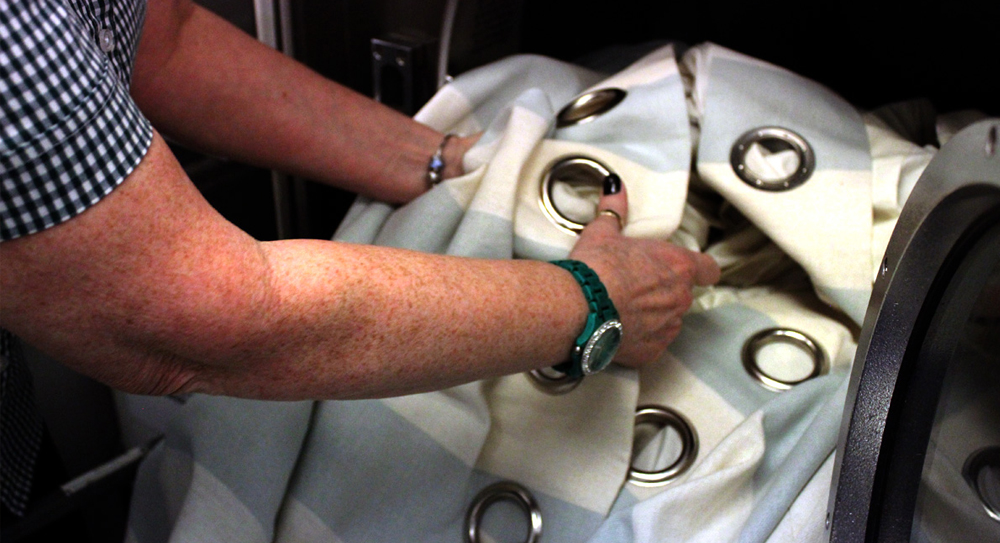 Curtains are conditioned, pressed, and carefully inspected for freshness, color, and drape.