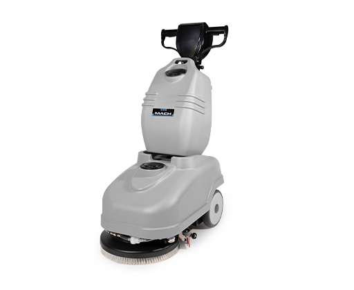 Gently agitating the surface with rotating brushes or pads while applying water and cleaning solution